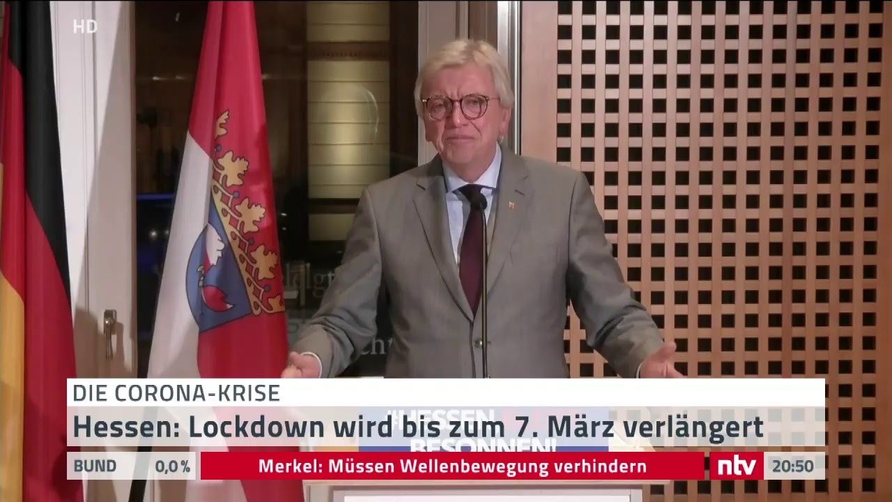 Der lockdown wird in jedem fall bis mitte februar verlängert. Doch schon jetzt deuten sich erste einigungen an: Die pressekonferenz mit kanzlerin merkel am abend live. Sie beriet am mittwoch mit den ministerpräsidenten neue maßnahmen. Im anschluss an diese wird sich die kanzlerin erneut in einer pressekonferenz zu den beschlüssen äußern.